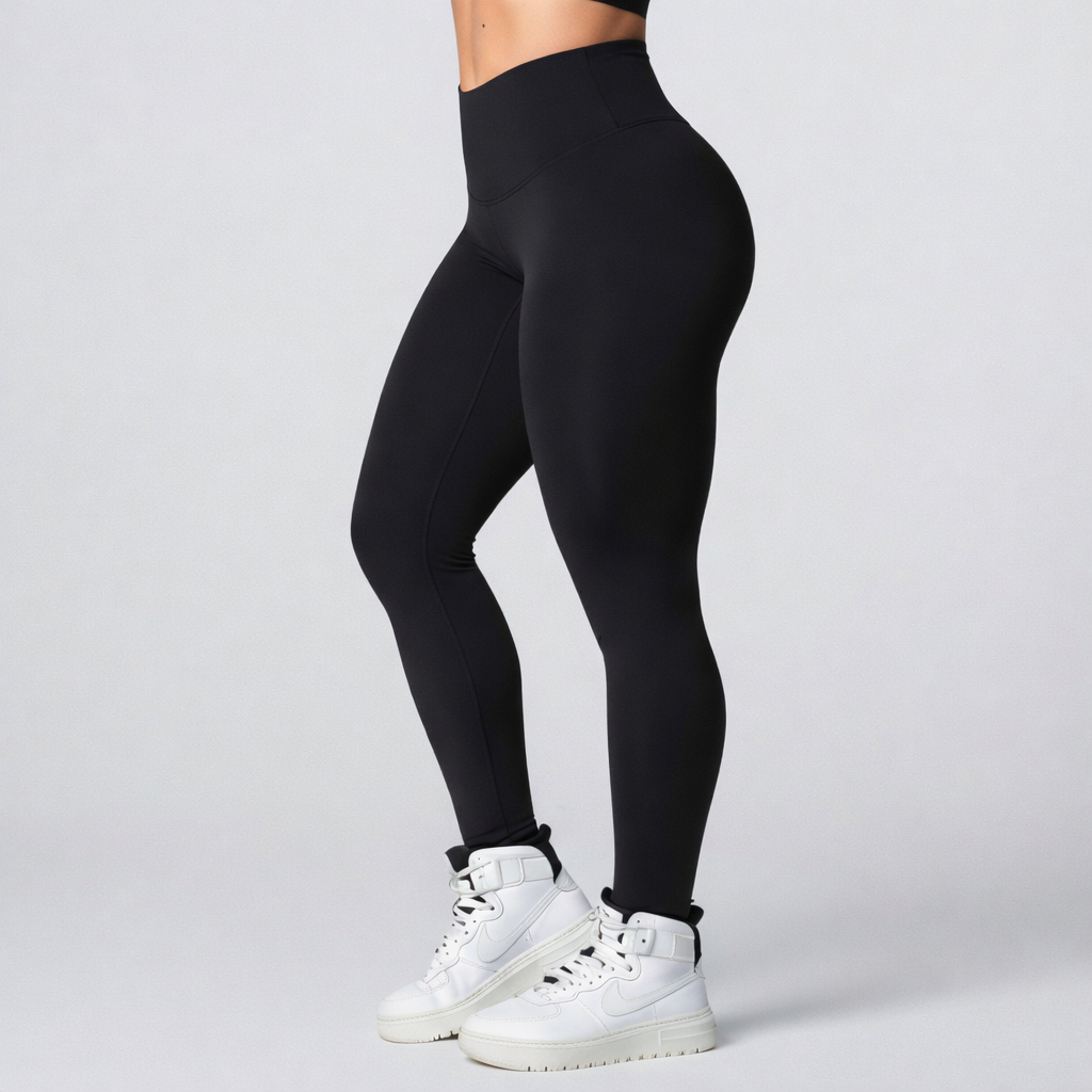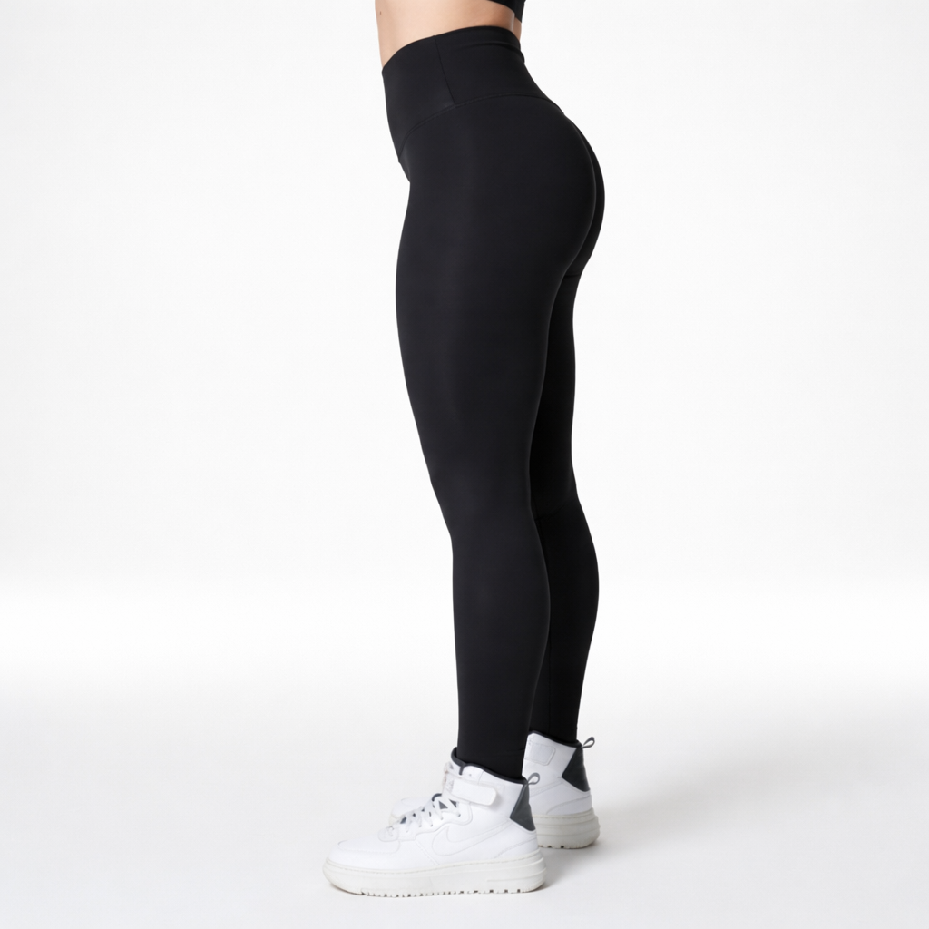 High-Waisted Leggings featuring an extra-wide, double-layered waistband designed for superior core support and tummy control. |